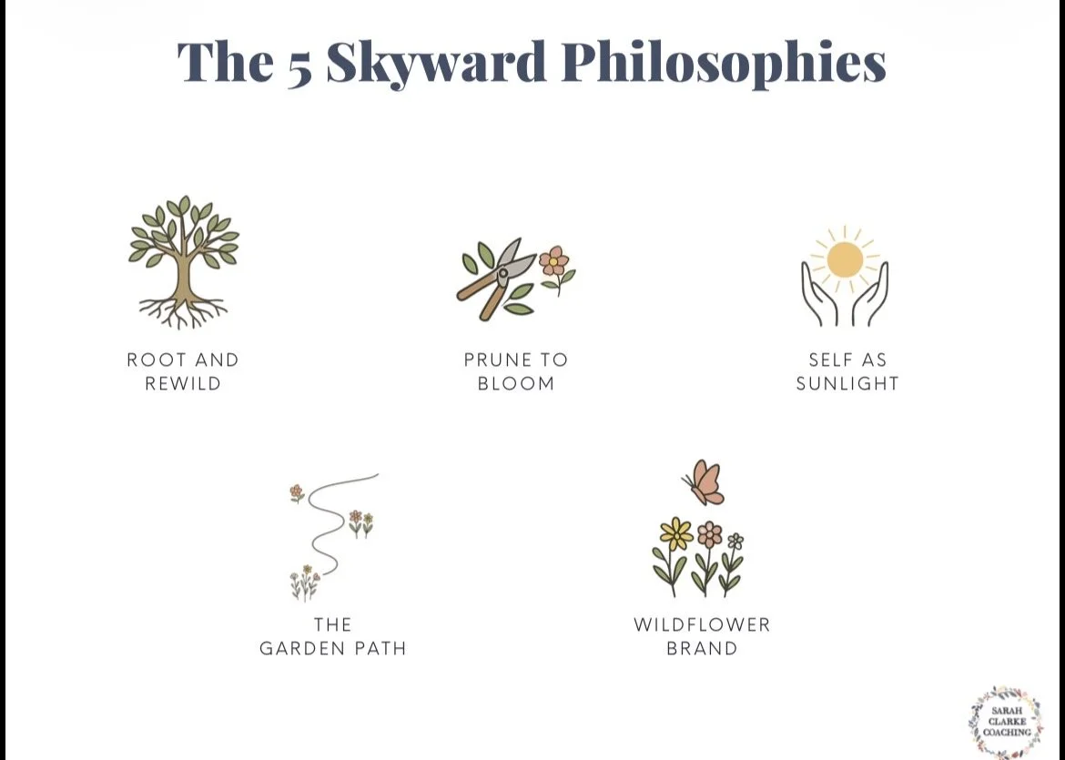 Skyward is a six-month, high-touch mastermind for established, purpose-led coaches, integrating deep psychometric-led 1:1 self-leadership and identity work with intuitive, identity-first business strategy, all supported by a carefully curated collective of ambitious peer coaches.